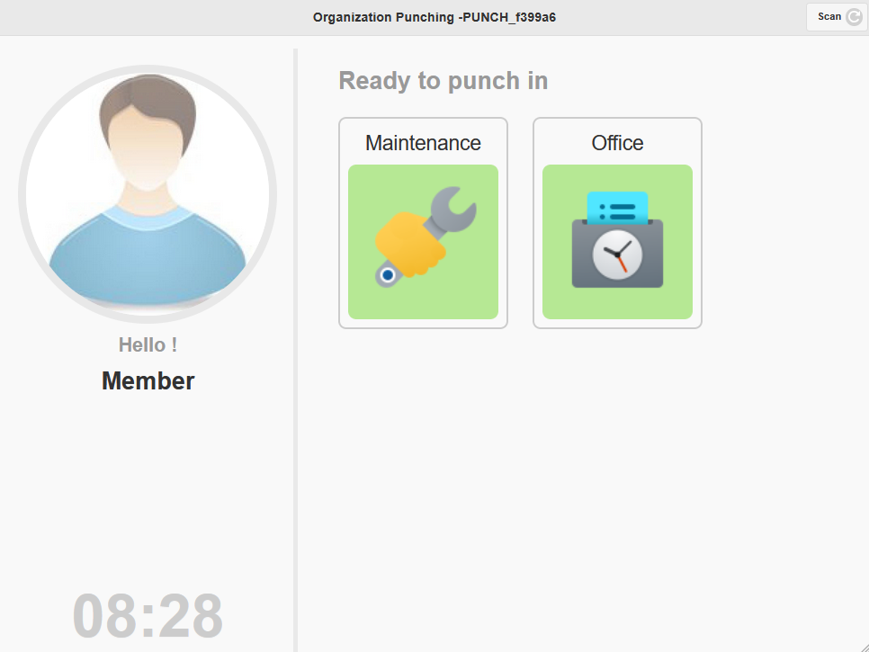 When you arrive at a punch device, open the Clock Puncher screen and allow camera access if requested. Then show your personal QR code to the camera.