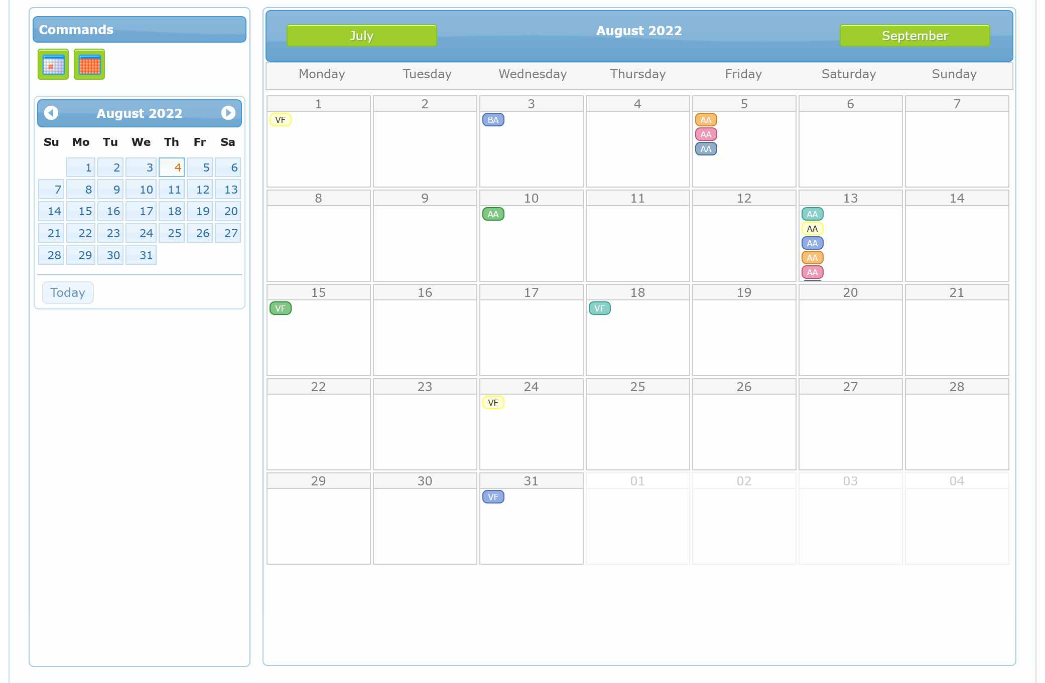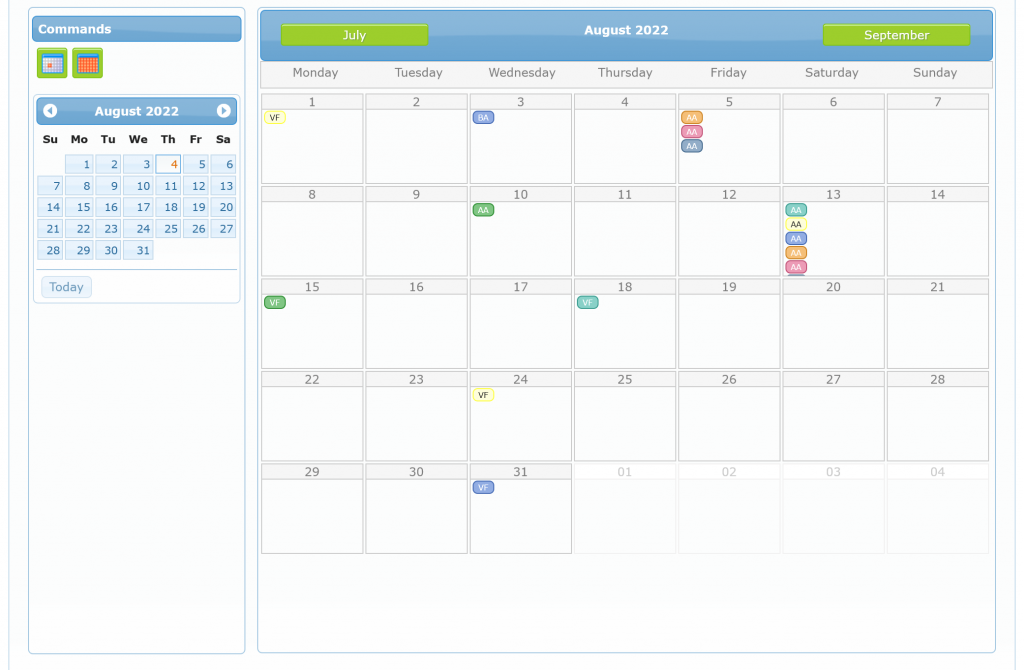 This view displays all course’s completed sessions or lessons. User can choose between the monthly or the daily view.