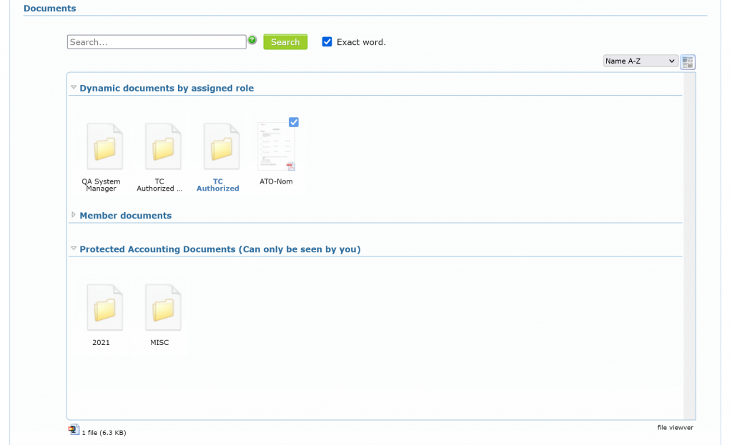 Dynamic documents by assigned roles (only in desktop view) are all default files related to each roles assigned to member. It includes “Dynamic documents” with special code, designed by administrators, that generated as a a PDF file that includes data from the system, such as member’s lastname of phone numbers.