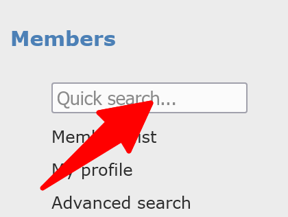 At different places, the system might ask you or let you search for a member by displaying an input text (usually indicating “Quick search…” or “Member…” or in mobile version “Filter…”).