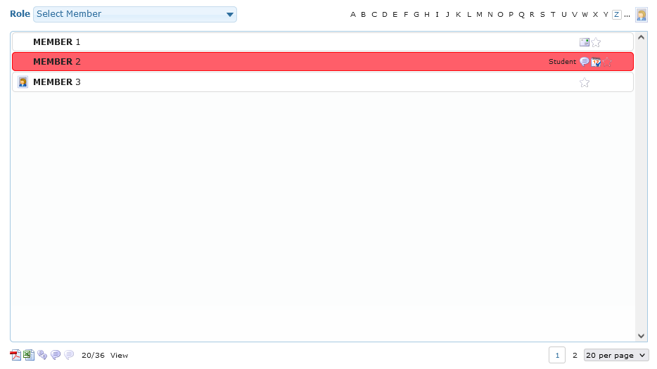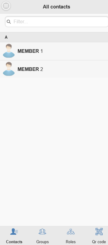 Users will have the choice to list all members, alphabetically (default view), by groups, by roles or using the Qr code identification feature.