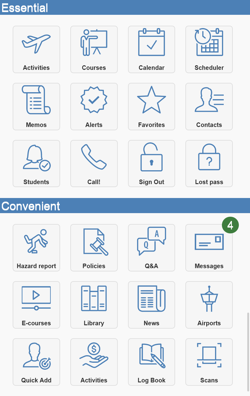 | Logbook | Display user’s flight activities | ||