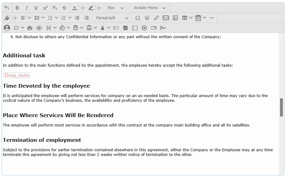 Add Member signatureInserts a signature placeholder/image for a selected member.Member search, Width.Signature block appears at cursor position.