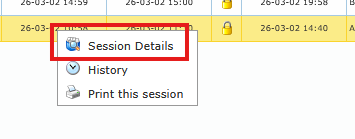 Session row context menu showing Session Details action