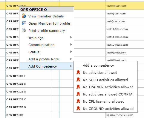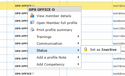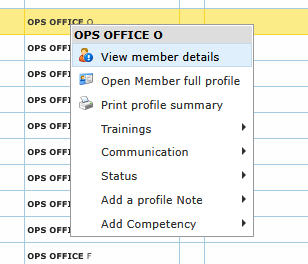 Right-clicking a member row opens a full action menu. This is the fastest way to launch targeted operations without leaving the list.
