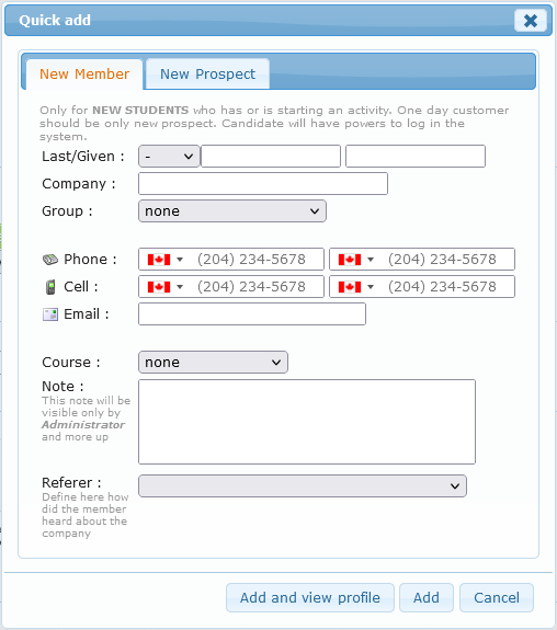 This si the quickest way to add a new member. Complete details can be registered later. Useful to add a member without leaving the actual viewed page.
