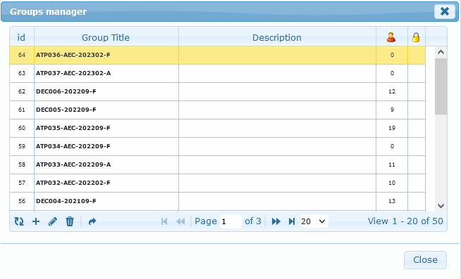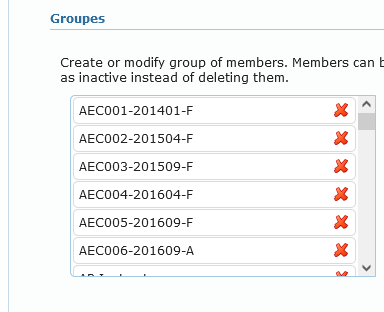 Groups are listed to show the last created one first. System will also displayed number of assigned attached to students. Deleting a group, that has members attached to, will only set it as inactive. To force deletion, the user has to first remove the group in student’s profile individually or using the advanced search additional tool box.
